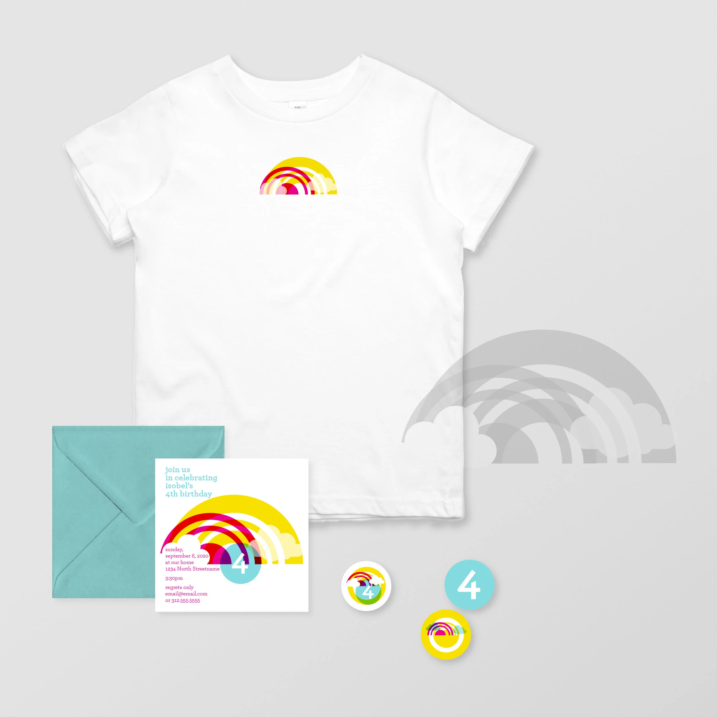 Custom sets include handmade printed kids apparel, personalized invites, and buttons.